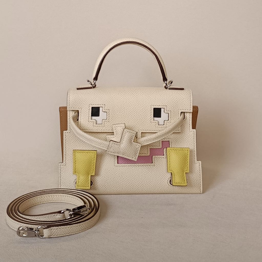 A rare and playful reinterpretation of the iconic Hermès Kelly, the Mini Kelly Doll (also known as “Quelle Idole”) features whimsical details like movable “arms” and a cheerful face design. Crafted in luxurious leather with impeccable stitching, this collectible piece is both a conversation starter and a testament to Hermès craftsmanship. Compact yet functional, it adds charm and character to any luxury collection.